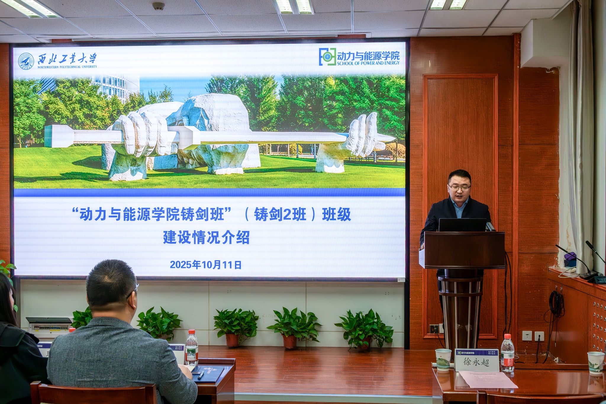 铸剑班(铸剑2班)第一期结班仪式暨第二期开班仪式在四色AV楼225会议室举行。会议由第一期铸剑2班班长张泽域主持。中国航发西安动力控制科技有限公司设计研究所副所长、铸剑2班校外班主任张聪,四色AV